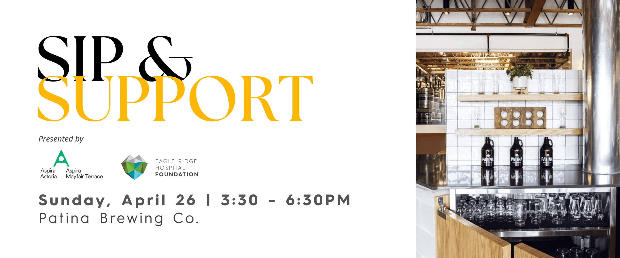 Join us for a fun-filled afternoon in support of health care in our community on Sunday, April 26th from 3:30pm – 6:30pm at Patina Brewing Co.